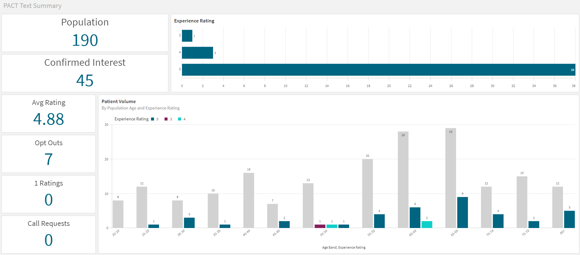 The patient can reply with 1 through 5. Anyone who rates a 1 will be asked if we can call them to follow up.