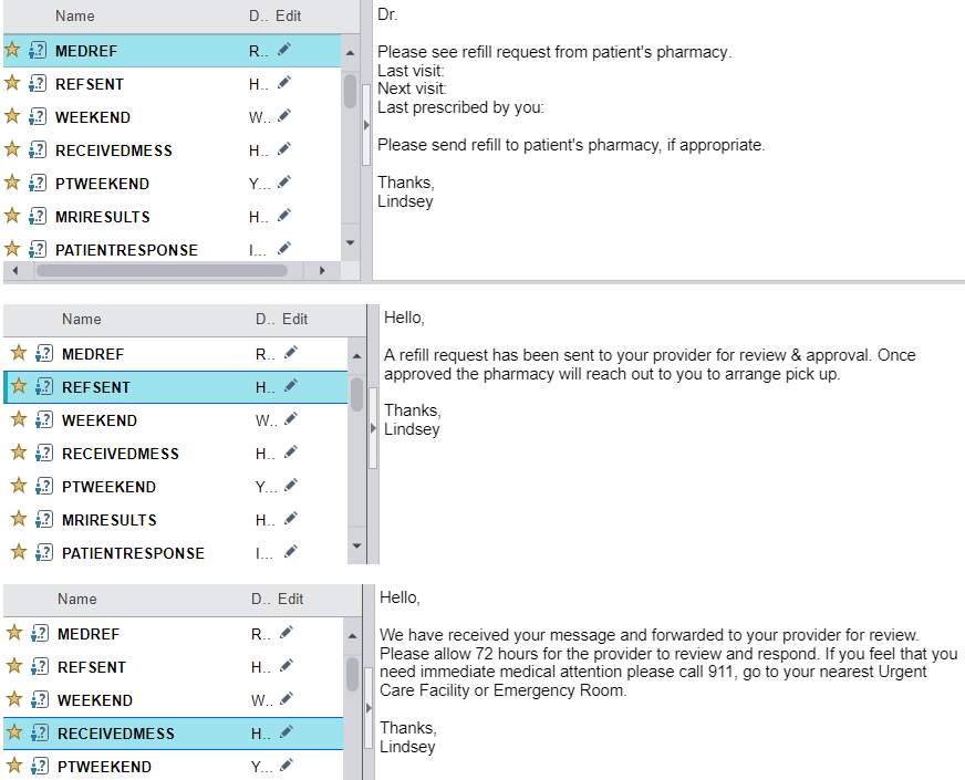 My organization is looking to streamline the process of responding to patient messages in Epic. Do any of you use dot phrases to respond to non-symptomatic patient messages in Epic? If so, have you run into any legal liability with this process? Have you found this to be a patient and or staff satisfier? Any thoughts would be appreciated.