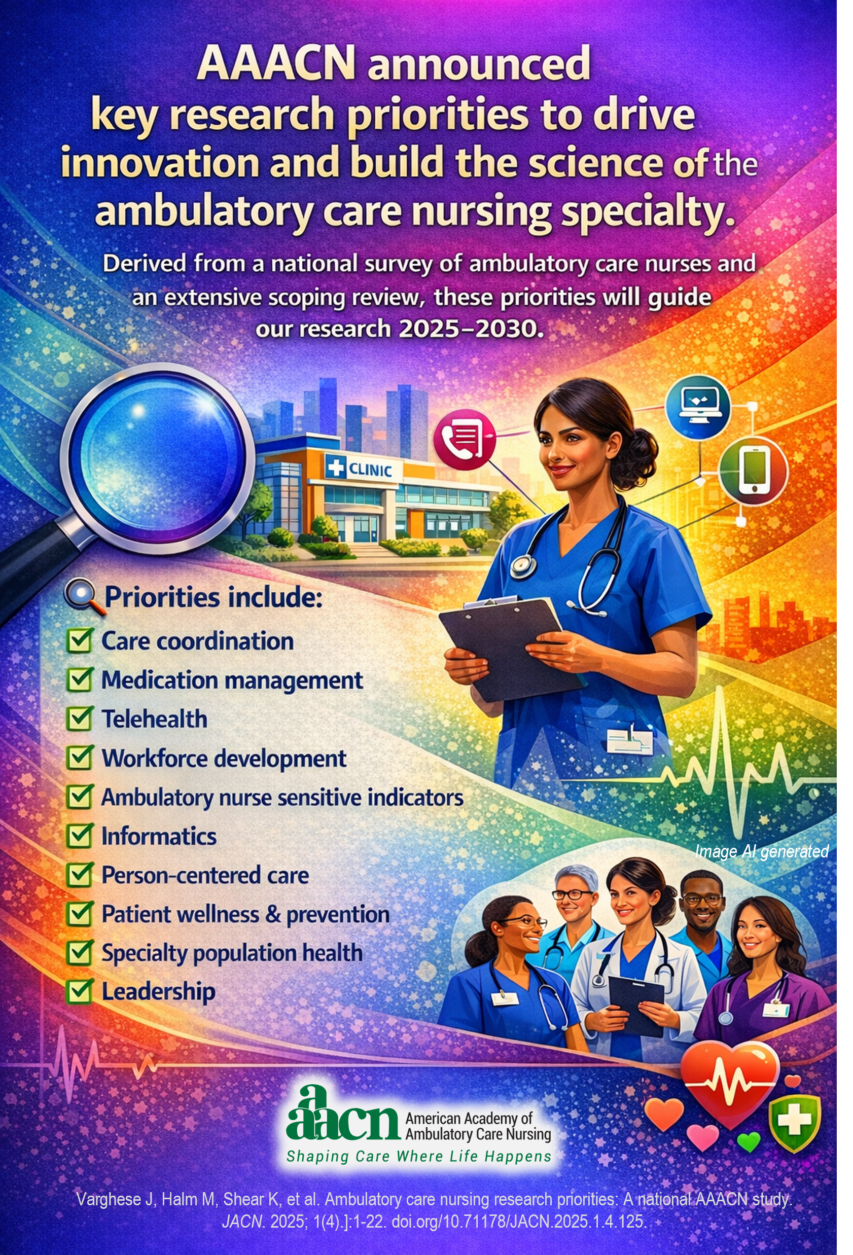The focus of the call will be informal discussion of what work members have finished, in progress, or getting started related to the AAACN Research Priorities: