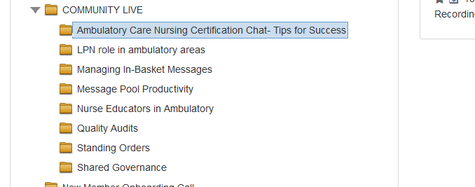 You'll find it in the Open Forum Community Library - from there go to the COMMUNITY LIVE drop down and open the Ambulatory Care Nursing Certification Chat- Tips for Success (screen shot of what you'll see below). Lots of good information from members that are studying and some that had just passed and had great tips!